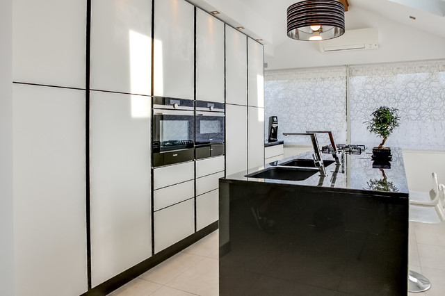 Cuisine Contemporaine Avec Ilot. Design de cuisine de luxe. Avec ses meubles à façades sans poignées, elle dégage une certaine quiétude. Cuisine noire et bois foncé avec grand îlot central toulouse.un pan de mur aménagé avec une colonne dédié au frigo et congélateur, une colonne pour le four intégré avec du rangement présent dans la partie haute et basse ainsi qu'une colonne de rangement sur le côté. Plutôt réservée aux grands volumes. Approfondissez votre palette avec la nouvelle technologie corian® deepcolour™ des couleurs plus riches, plus sombres, permettent aux designers, architectes et transformateurs d'obtenir des tons qu'ils n'auraient jamais imaginés avec.
